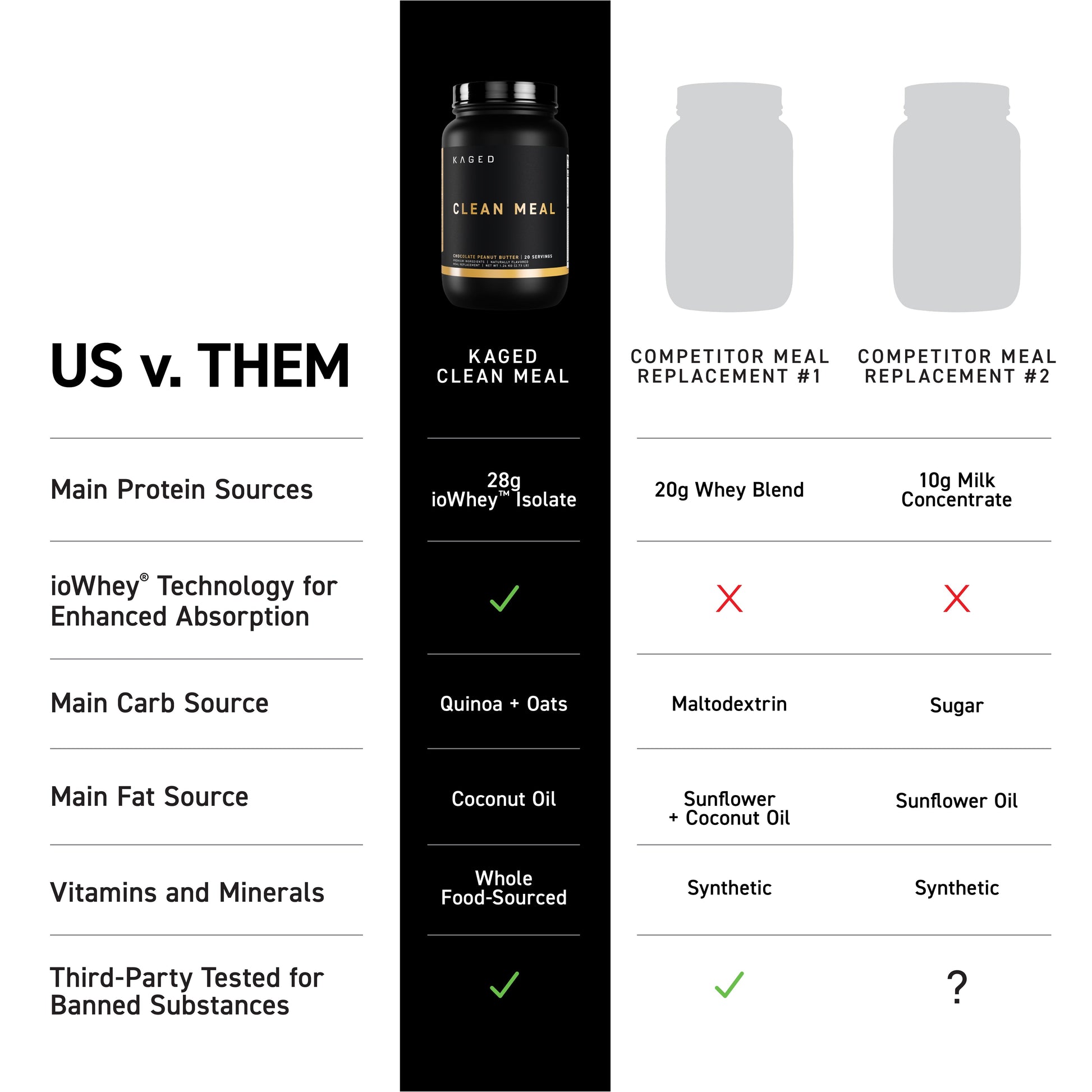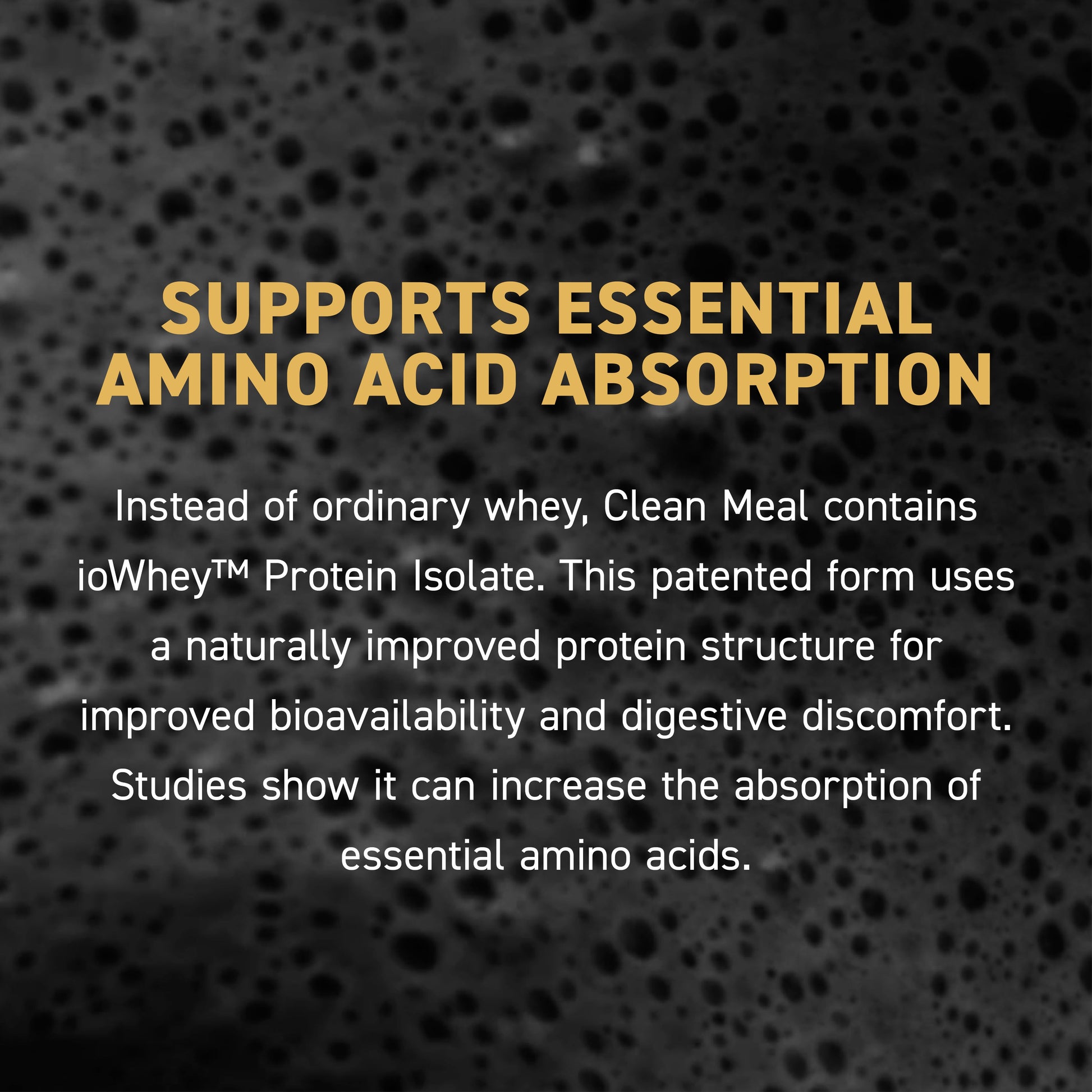 Clean Meal is a clean, convenient, and complete meal replacement shake. Each scoop has 28g of enhanced-absorption whey protein isolate, 18g of organic quinoa and oats, 4g of MCT oil from coconut oil, whole-food micronutrients, and 2g of sugar or less. In two delicious flavors, Clean Meal is the perfect on-the-go meal for those who value high-quality nutrition.