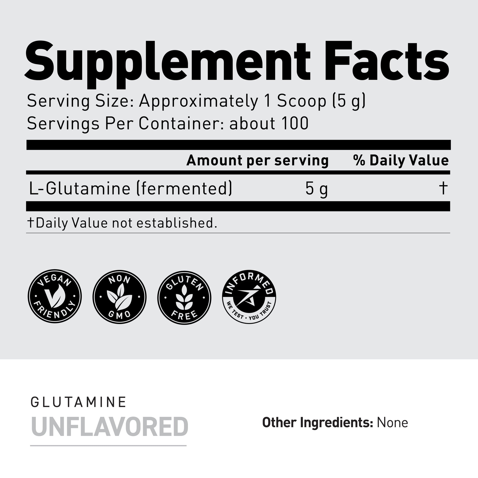 Glutamine is an amino acid that aids in tissue repair, muscle growth, and recovery.* It also plays a role in gut and intestinal health.* Our fermented glutamine is 100% plant-based. This pure, unflavored powder mixes easily, so it’s perfect to add to any muscle-building or recovery stack.