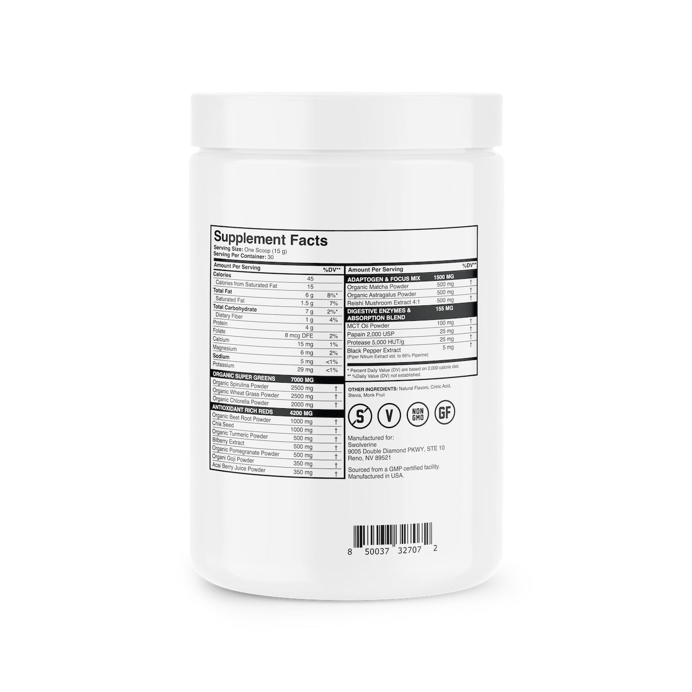 No Blends (Transparency): Other greens powders use blends and complexes and underdose key ingredients. If you're greens powder, lists everything in the "other ingredients", ditch it. You won’t find any hidden blends in Swolverine's Greens + Reds. We give you complete transparency and tell you exactly how much of each ingredient we use. Otherwise, you'll never know what the product you're buying truly has.