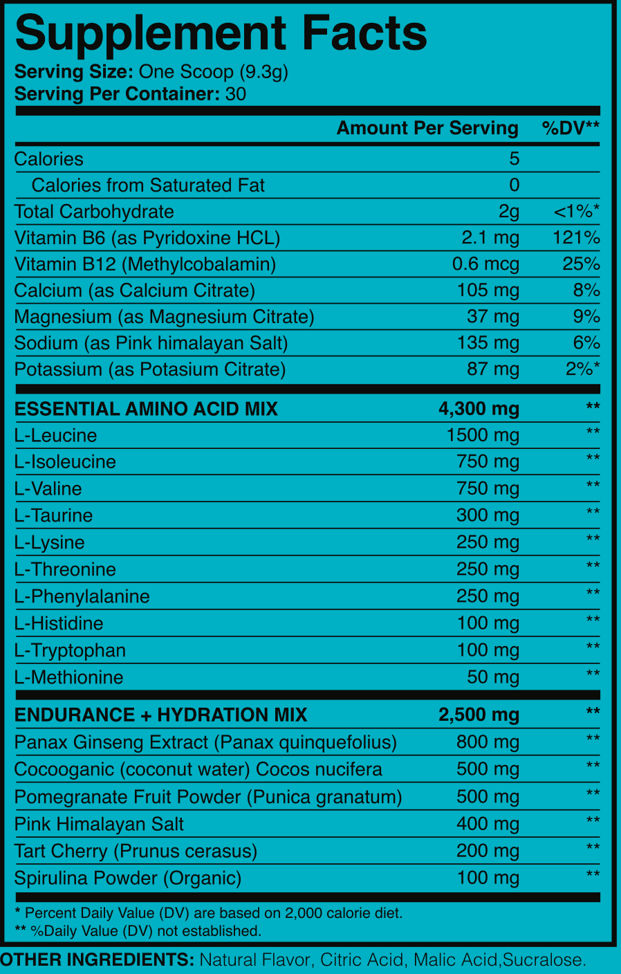 INTRA layers in naturally sourced ingredients chosen for athletes—like pomegranate extract, tart cherry, spirulina (a nutrient‑dense blue‑green algae), and Panax ginseng—to support training intensity, muscle comfort, and focus so you can push and repeat quality work.*