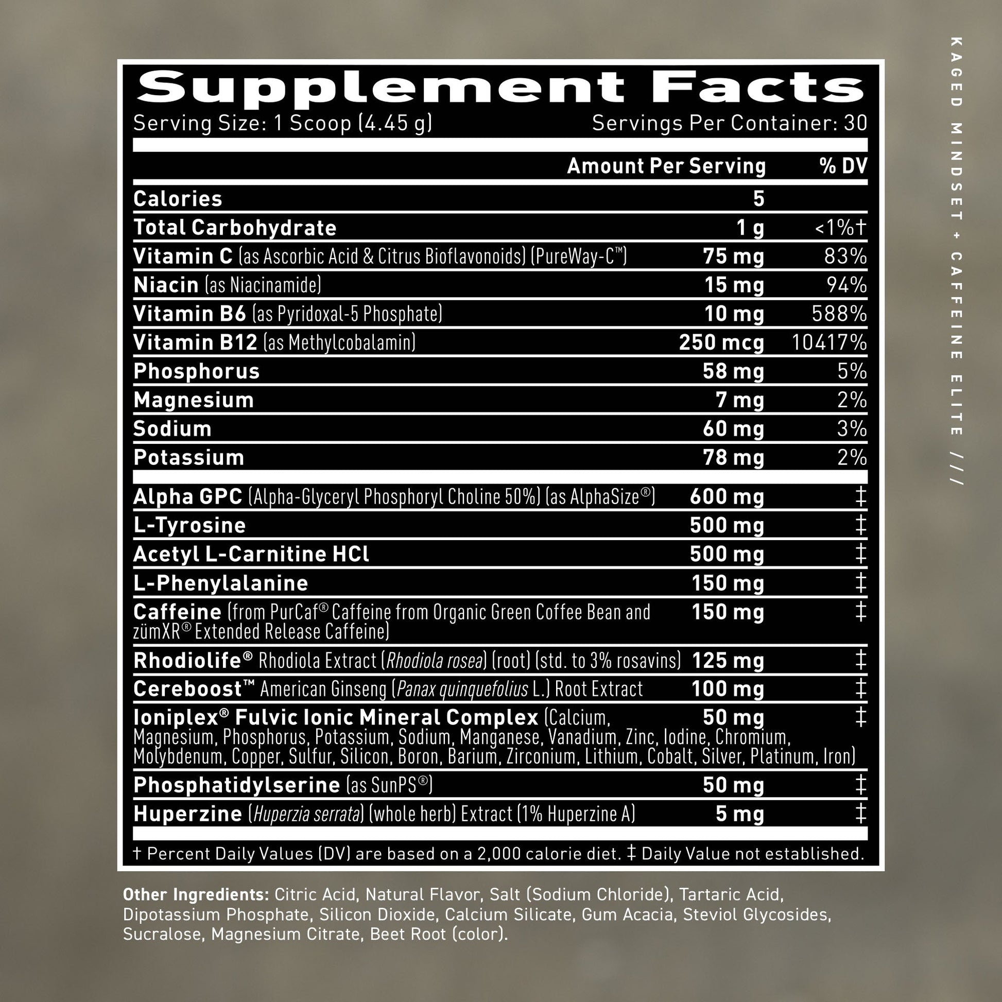 Kaged Mindset™ Elite + Caffeine is a nootropic designed for your most intense work sessions. It helps enhance working memory, improves focus, and sharpens cognition. With key ingredients like Alpha-GPC and RhodioLife®, this nootropic will help you be more productive and creative so you can accomplish your most.