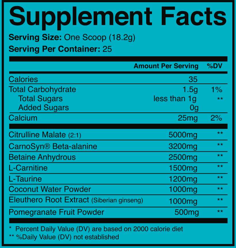 Better Recovery - Pomegranates and Betaine contain antioxidant-rich plant compounds, phenolic acids, and nitrates that may help reduce inflammation and improve workout recovery by reducing muscle soreness. Studies show that pomegranates may reduce delayed onset muscle soreness by 13.4%. Citrulline malate has also been proven to increase blood flow, thereby reducing soreness and optimize workout recovery.